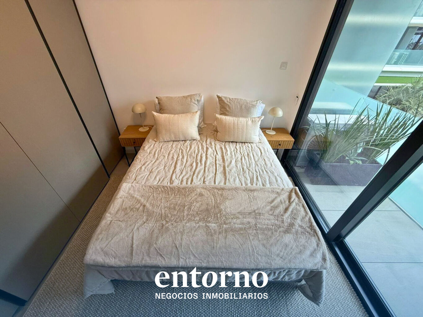 Cuenta con sommier Simmons, blackouts motorizados y ropa blanca Zara Home, logrando un estándar superior al habitual en alquileres tradicionales.