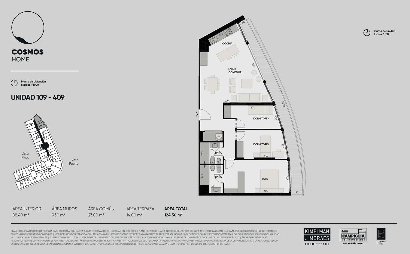Oportunidad de alquiler en Cosmos Home, proyecto residencial que combina diseño, confort y servicios de primer nivel.La unidad 409, a estrenar, cuenta con 124,50 m² totales, distribuidos en 3 dormitorios y 2 baños completos. Su planta es funcional y equilibrada.